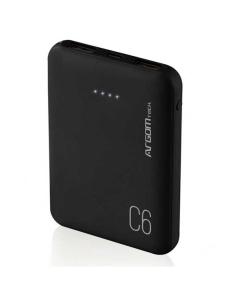 La batería externa ultracompacta ArgomTech de 6000 mAh ofrece hasta 3 cargas adicionales. Es ligera y delgada, por lo que cabe en casi cualquier bolsillo. Esto te brinda gran tranquilidad durante tus viajes largos. Incluye dos puertos USB para cargar dos dispositivos simultáneamente. Incluye indicadores LED brillantes y fáciles de leer que muestran el estado de la batería. ¡Olvídate de quedarte sin batería en tus dispositivos móviles!